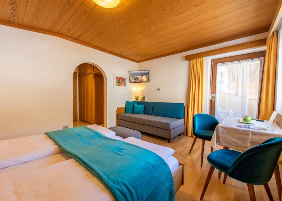 Ausgestattet mit neuem Bad/Dusche u. WC, Handtuchwärmer, Haarfön, Flachbild-Sat-TV, Couch oder Relaxsessel, Safe, Kühlschrank, Sonnenbalkon mit Traumblick zum Dorf, Kloster, Ortlergruppe und kostenlosen WLAN.